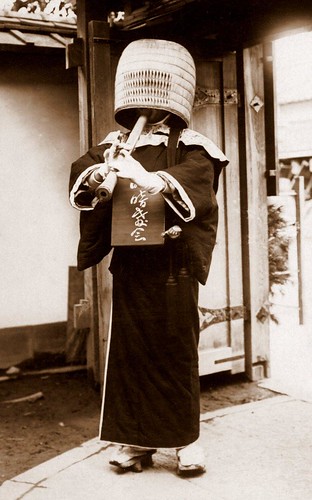he komusō (虚無僧, komusō, hiragana: こむそう; also romanized komusou or komuso) were a group of Japanese mendicant monks of the Fuke school of Zen Buddhism who flourished during the Edo period of 1600–1868.[1] Komusō were characterized by a straw bascinet (a sedge or reed hood named a tengai or tengui) worn on the head, manifesting the absence of specific ego.[2] They were also known for playing solo pieces on the shakuhachi (a type of Japanese bamboo flute). These pieces, called honkyoku ("original pieces"), were played during a meditative practice called suizen, for alms, as a method of attaining enlightenment, and as a healing modality.[citation needed] The Japanese government introduced reforms after the Edo period, abolishing the Fuke sect. Records of the musical repertoire survived, and are being revived in the 21st century.[citation needed]