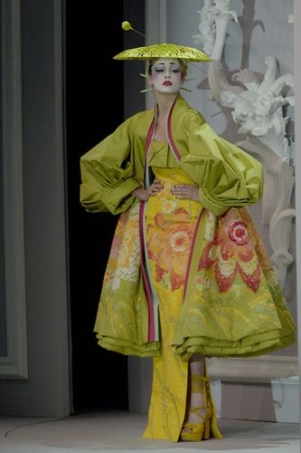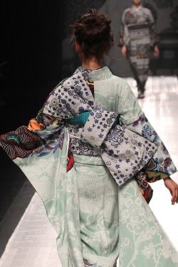 a “real kimono revival happening in Japan.” (Scroll down for examples from Vogue’s Tokyo street-style portfolios.) She traces the roots of this trend to early 2000s street style, when scenesters started wearing vintage kimonos as a way, Rout explains, of turning their backs on the “the ubiquity of global...fast fashion,” and also as a reaction against an older generation, “who saw the kimono as kind of old-fashioned and a bit too traditional. Younger generations,” she notes, “don’t have quite the same hang-ups, regarding kimonos.”