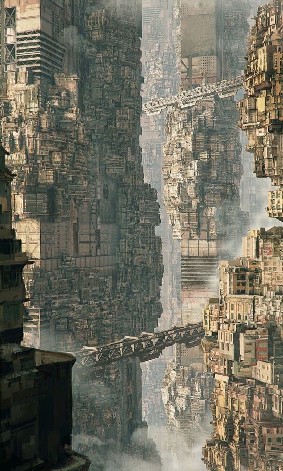 I think the buildings look really eerie and sad breaking down.a structure that has been abandoned by its creater.