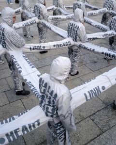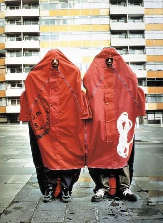 After graduating from a fashion design school, Lucy Orta turned towards visual arts as of 1991, when she met Jorge Orta, an Argentinian artist with whom she has collaborated since. Experimenting with sculpture, photography, as well as interventions in the public space, her work, which she defines as “body architecture”, addresses the boundaries between architecture and the body. While she chooses to show her work in museums and cultural institutions, she also insists on showing it outside, in that she considers the street a crucial element to re-assess our social realities through the use of poetic and metaphorical forms made to explore the notion of exchanges in the public space. With her first Refuge Wear and Body Architecture pieces in the 90s, which were made out of humanitarian equipment like tents, survival blankets and sleeping bags turned into temporary shelters and portable architectures, Orta took an interest in means of survival.